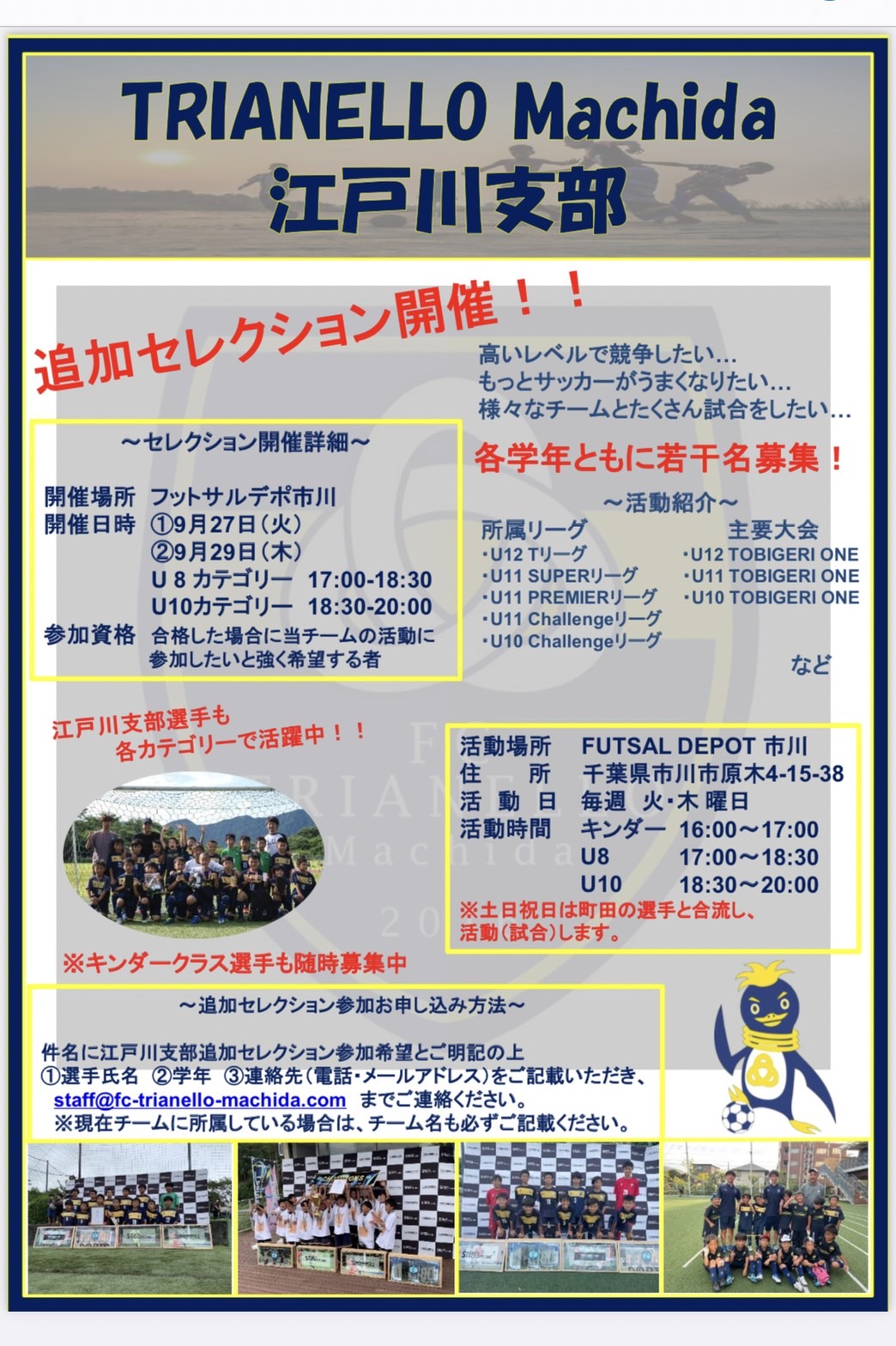 江戸川支部U8,U10カテゴリーの追加セレクションを開催させていただくことが決まりました‼️