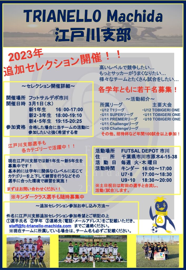 この度、3月1日(水)に江戸川支部の追加セレクションを開催させていただくことが決定致しました!