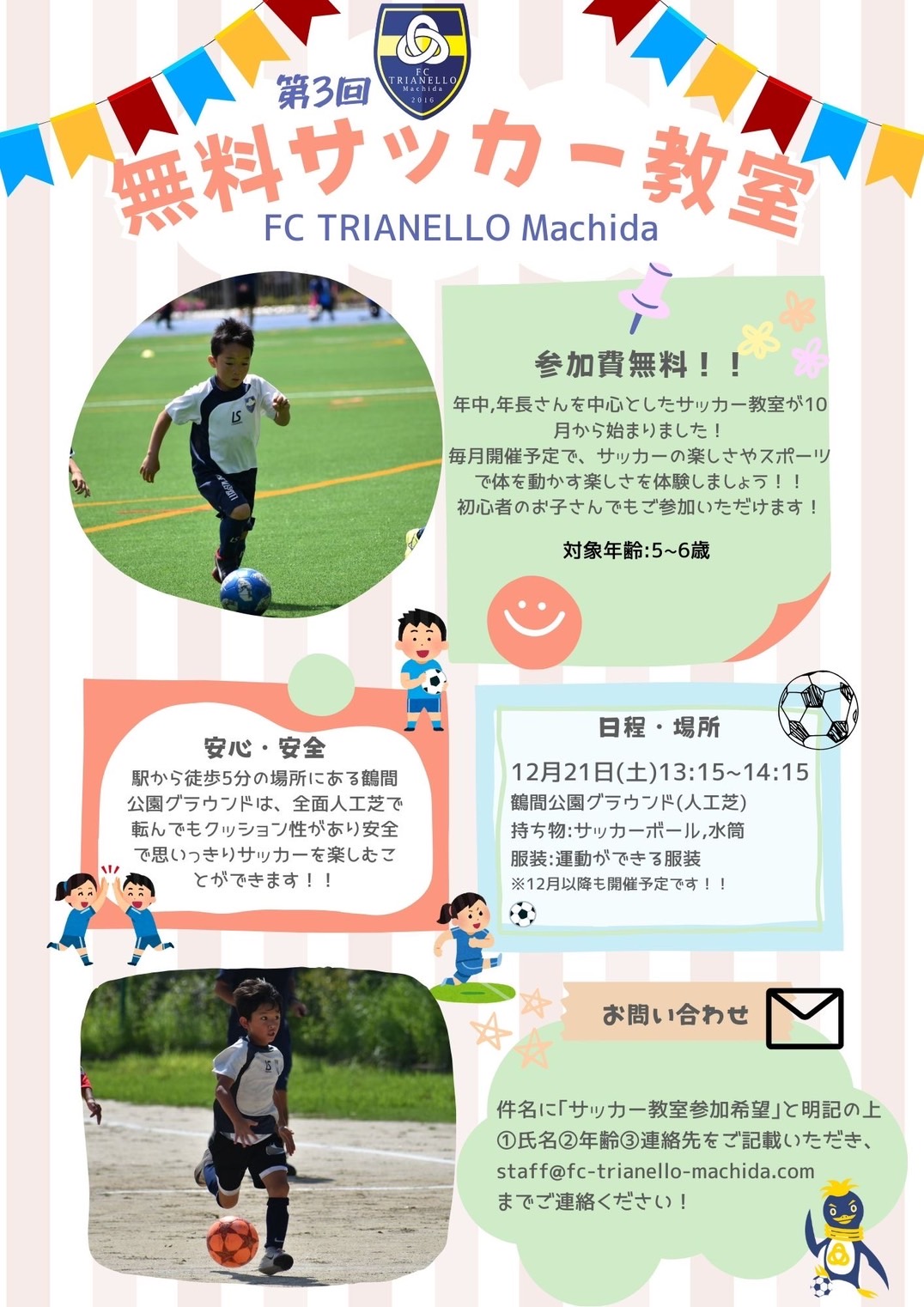 この度、第3回 トリアネーロ町田幼児サッカー教室、12月の開催日が決定しました❗️