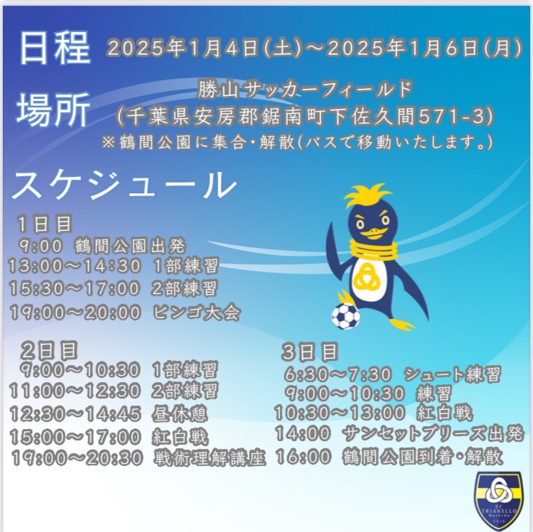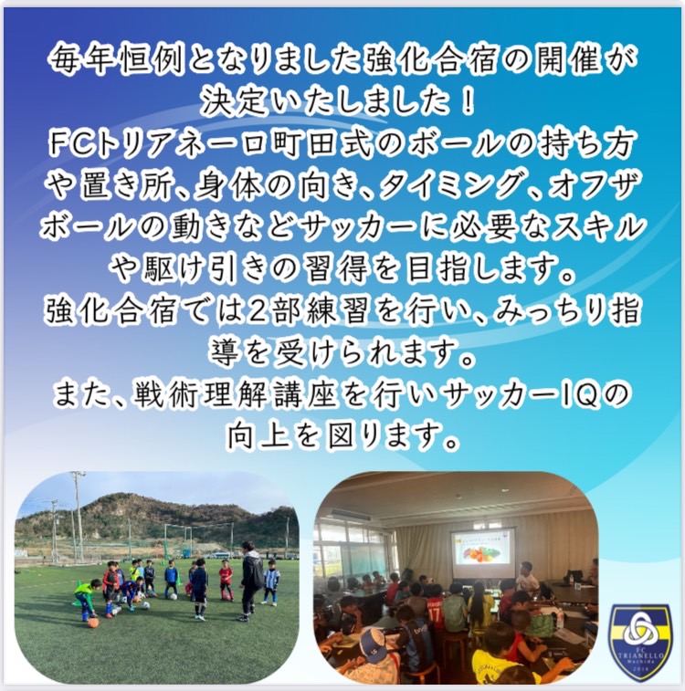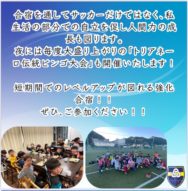 普段トリアネーロのチームやスクールで行っている練習はもちろんですが、サッカーの理解を深めるためのトレーニングも加えて、より実践に特化した内容を2泊3日で習得してもらいます🔥