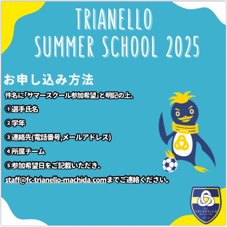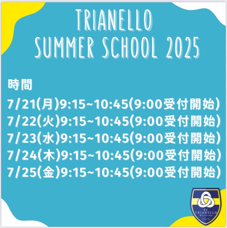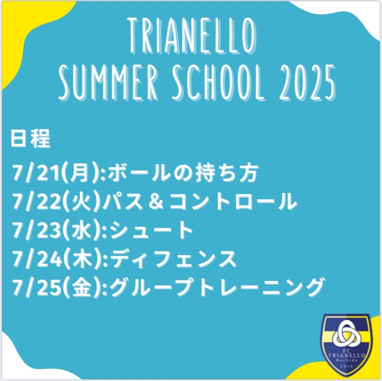 『TRIANELLO SUMMER SCHOOL 2025』を7/21〜7/25で開催いたします‼️