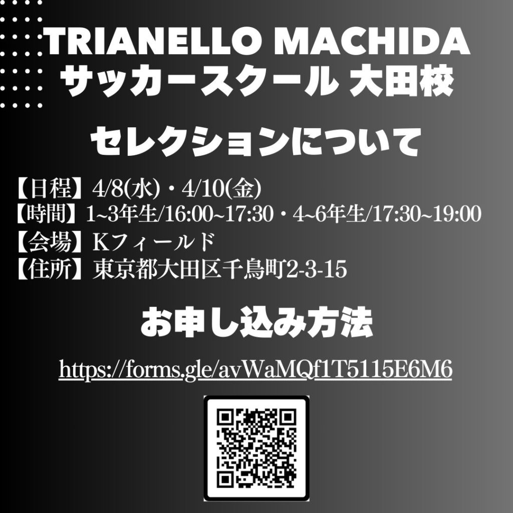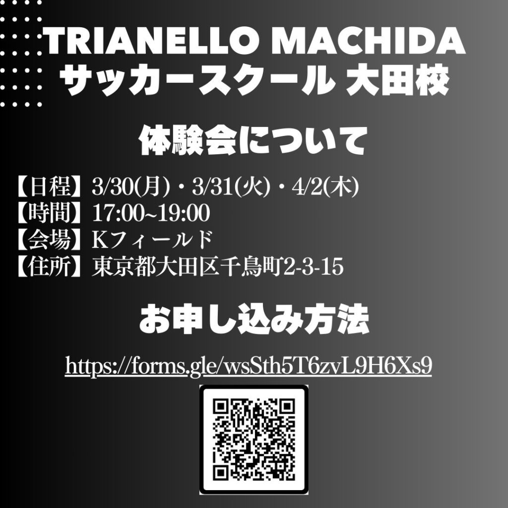 先日告知させていただきましたトリアネーロ町田サッカースクール大田校の詳細情報を発表させていただきます。