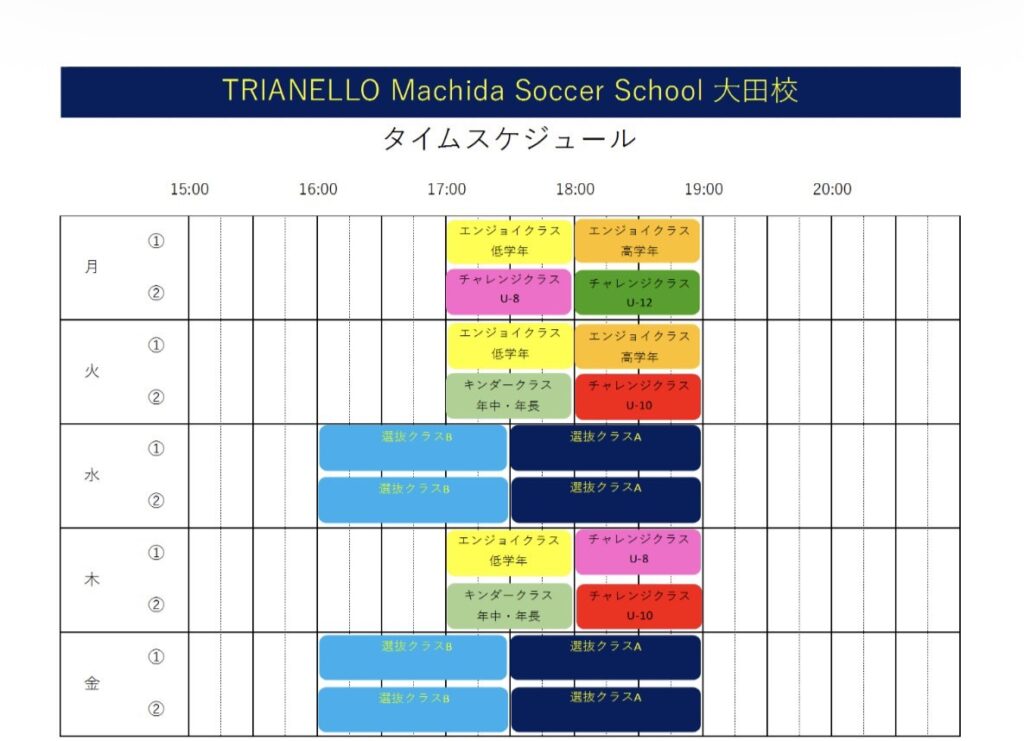 ※各曜日のクラス編成につきましては添付画像をご確認ください